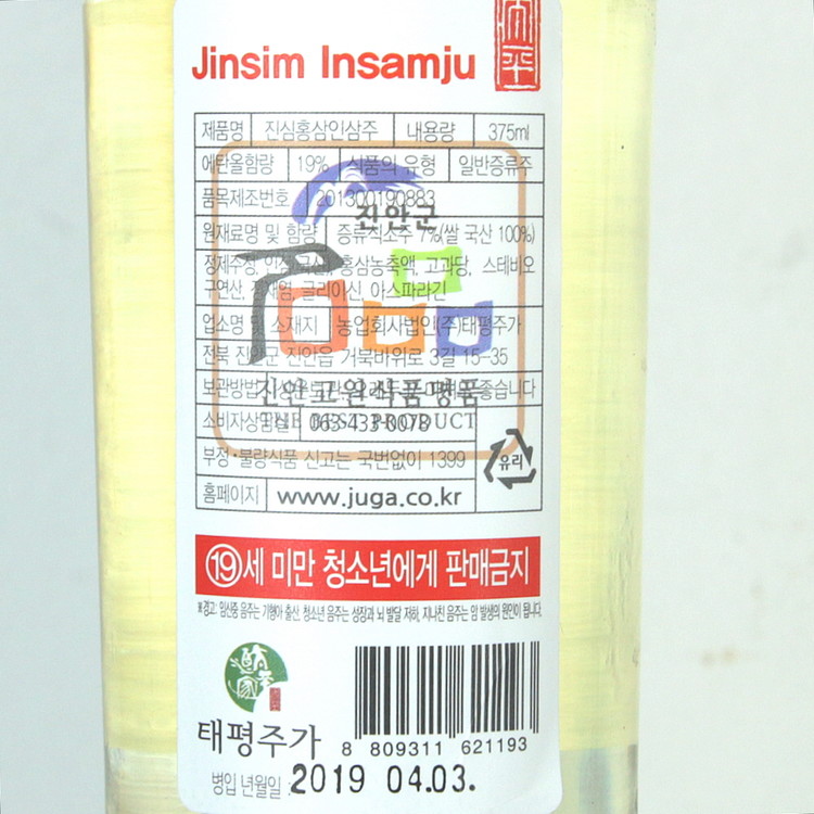 <!-- SE-TEXT { -->진심 홍삼 인삼주 19도 375ml